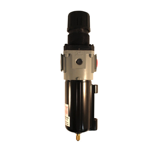 1/4" NPT Deluxe FRL trio is a filter, regulator and lubricator all in one. The filter has an automatic overnight drain, the regulator is the reliev...